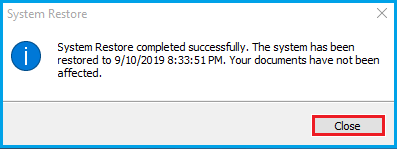 步骤 5。系统还原完全完成后,您将在桌面上看到一条弹出消息,然后单击关闭按钮将其关闭。
