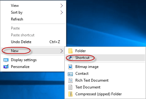 第 2 步:选择新建 > 快捷方式从显示的上下文菜单中。