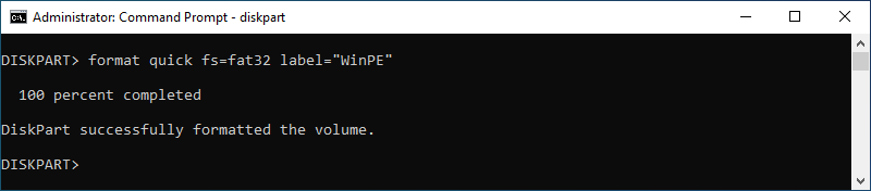 步骤9:类型format quick fs=fat32 label="WinPE"。