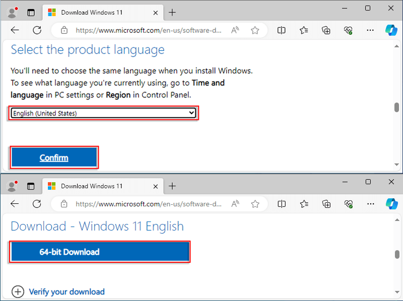 步骤2:选择语言砂单击确认,然后单击64位下载。
