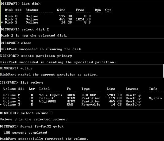 list disk - 找到与您的USB闪存驱动器相对应的磁盘(在我们的示例中,是磁盘2),然后选择: