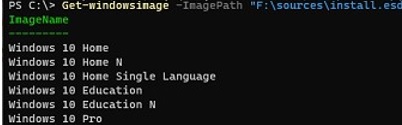 Get-windowsimage -ImagePath "F:sourcesinstall.esd"|select imagename