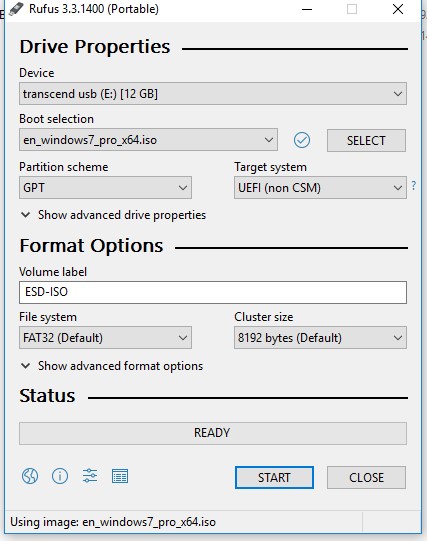 - USB闪存驱动器(USB V2或V3),最小容量4GB对于Windows 7或8 GB对于Windows 10/11;
