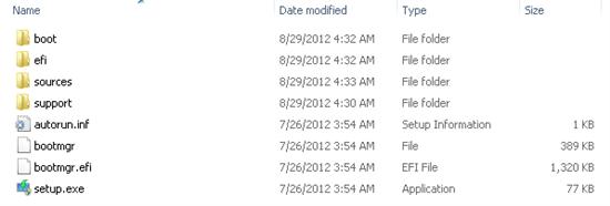 现在,您需要将文件从已安装的Windows X64安装ISO映像复制到您准备的USB闪存驱动器。例如,可以使用Windows Explorer,文件管理器或从命令行中完成此操作,例如: