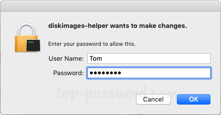 - 当提示 diskimages-helper 想要进行更改时,输入您的 Mac 密码并单击好的。