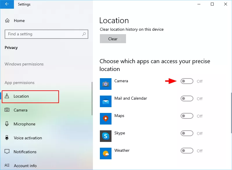 第4步:向下滚动以调整特定于应用程序的位置访问。