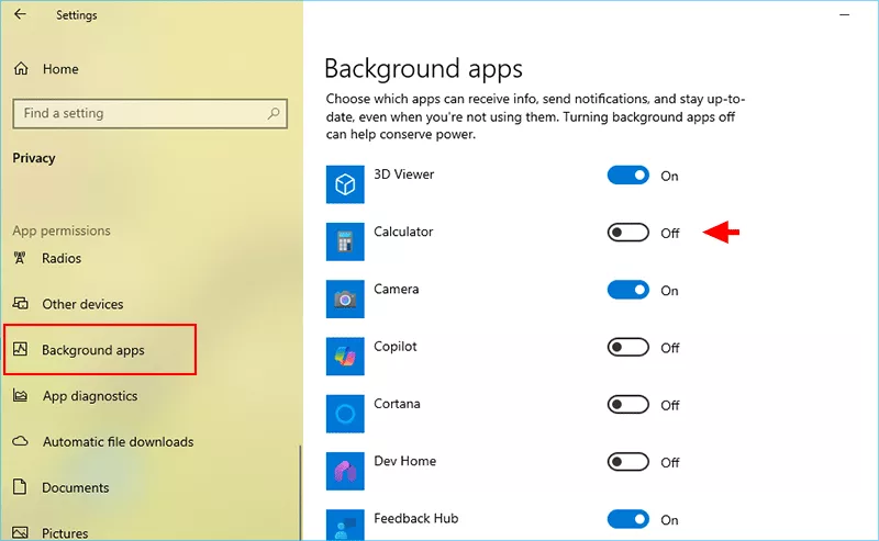 步骤2:选择您不想在后台运行的应用程序以禁用。