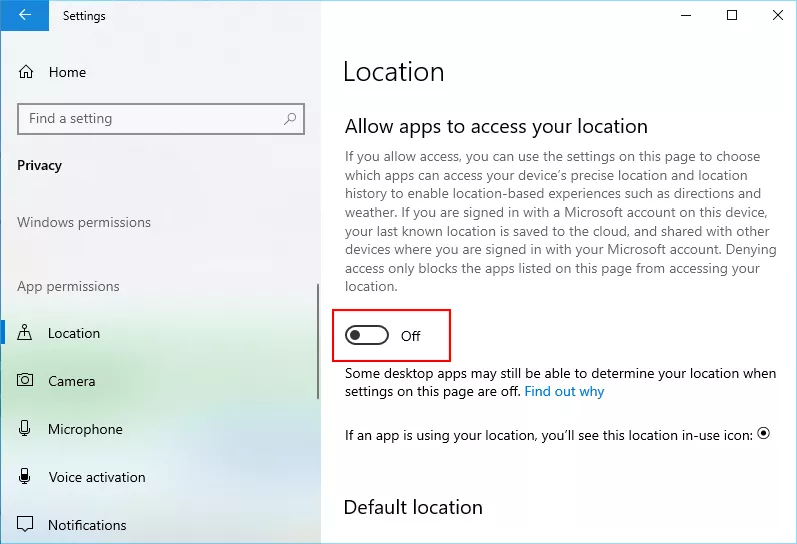 您可以在此处控制哪些应用程序可以访问您的位置。