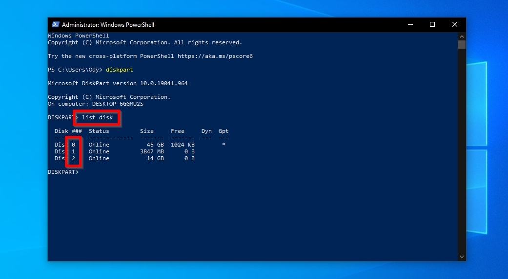 - 键入 select disk NUMBER,其中“NUMBER”是您在上一步中记下的磁盘。例如,选择磁盘 1。