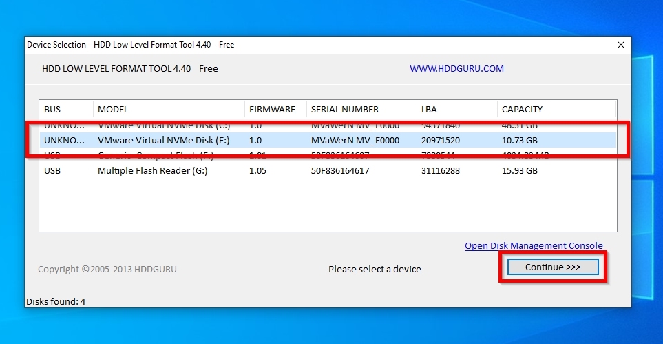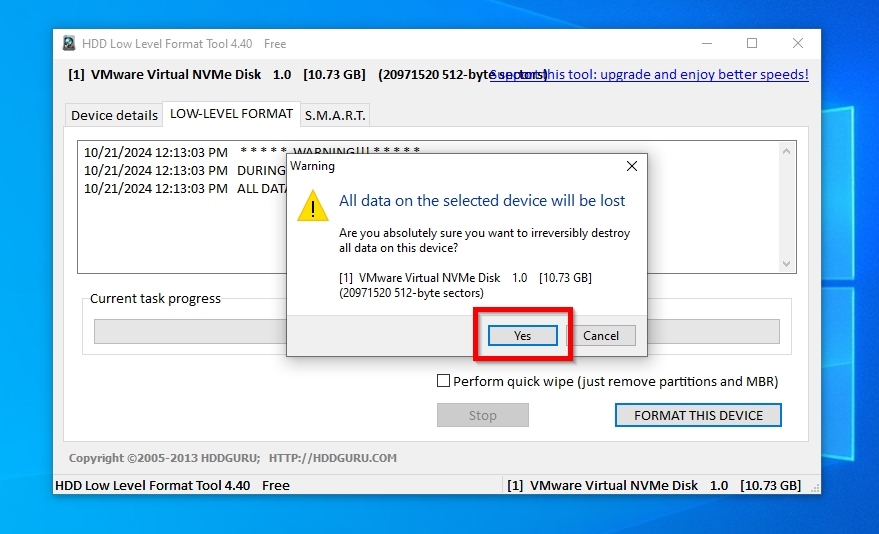 使用 HDDGuru 的硬盘低级格式化工具执行低级格式化: