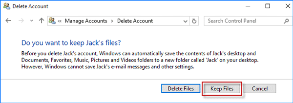 步骤3如果您想保留该管理员帐户的文件,请单击“保留文件”。