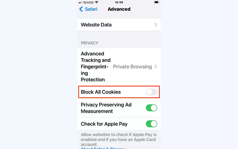 如果您已阻止 iPhone 上的所有 cookie,现在想要启用它们,请重复上述步骤并关闭阻止所有 Cookie选项。