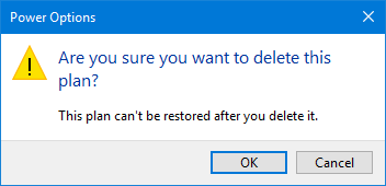 - 完成后,所选的电源计划将被删除,您将无法再使用它。