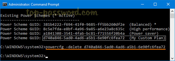 powercfg -setactive GUID - 现在,您可以使用以下命令删除所需的电源计划。
