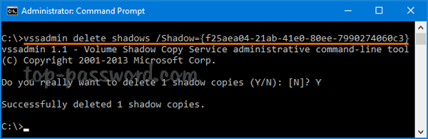 vssadmin delete shadows /Shadow={shadow copy ID}