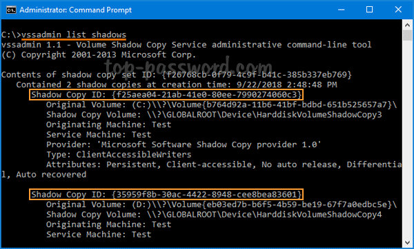 vssadmin list shadows