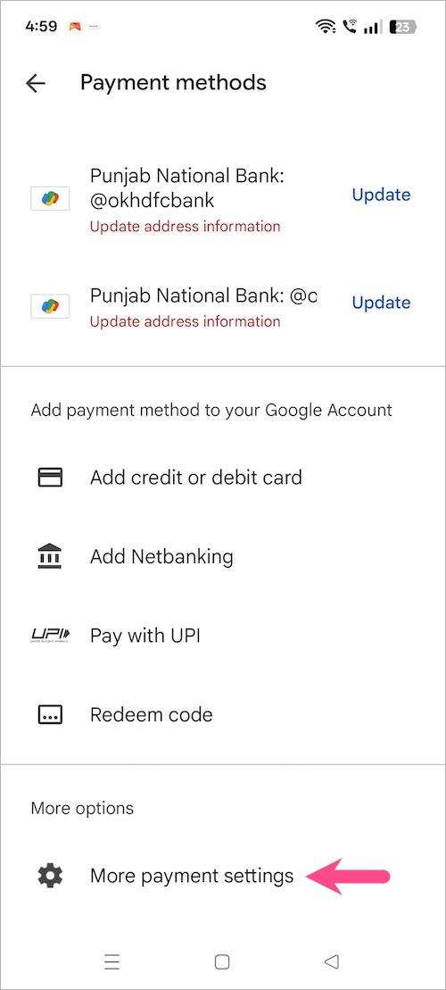 - 向下滚动到底部并点击更多支付设置(这将打开一个浏览器页面)。