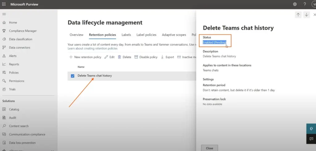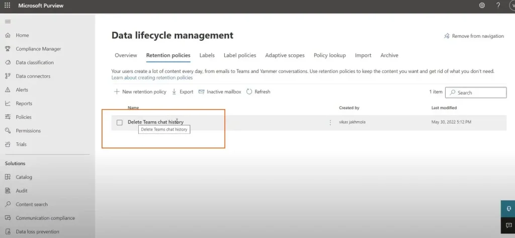 要删除团队聊天历史记录,我们必须为Microsoft团队聊天创建新的保留政策。