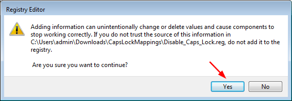 - 点击好的。现在,每当您错误地按下 Caps Lock 键时,都不会发生任何事情。