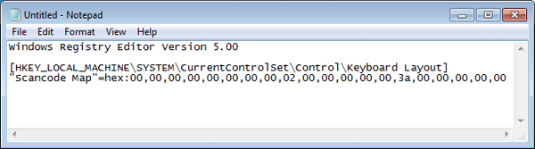 "Scancode Map"=hex:00,00,00,00,00,00,00,00,02,00,00,00,00,00,3a,00,00,00,00,00