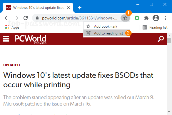 如果您遇到某个网页并想稍后阅读,只需单击书签图标(地址栏最右侧)。当出现菜单时,单击“添加到阅读列表“ 选项。