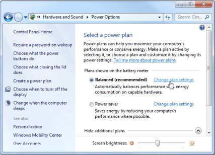 - 转到控制面板 - >硬件和声音 - >电源选项。