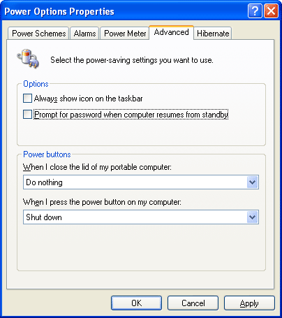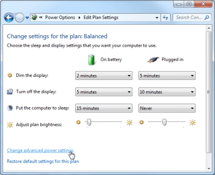 - 单击更改高级电源设置关联。显示“电源选项”对话框。