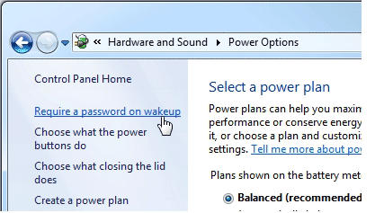 重新配置后,Windows不会提示并要求用户在简历中输入密码,或者从睡眠或待机状态中醒来。