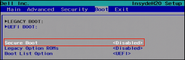 找到安全启动设置,如果可能的话,将其设置为残疾人。这可以在“安全”选项卡、“引导”选项卡或“身份验证”选项卡中找到。
