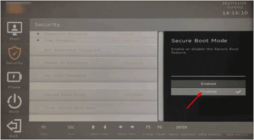 步骤 2:在 BIOS 中禁用/启用安全启动
