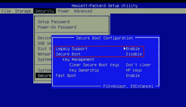 如果这对您不起作用,在某些情况下,您可能需要更改固件中的其他设置,更改启动列表选项作为 ”遗产”,并启用“加载旧版选项 ROM”。