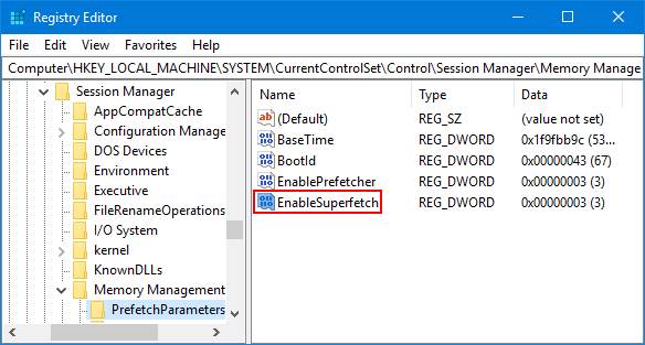 HKEY_LOCAL_MACHINE\SYSTEM\CurrentControlSet\Control\Session Manager\Memory Management\PrefetchParameters