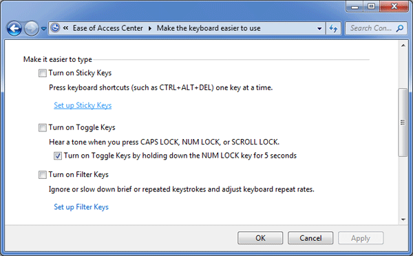 如何在 Windows 8/7/Vista 中禁用粘滞键
