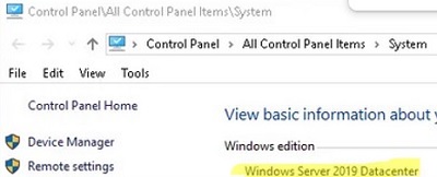 您可以使用控制面板检查主机上安装的 Windows Server 版本。导航到控制面板 -> 系统和安全 -> 系统(或运行命令:control /name Microsoft.System)。