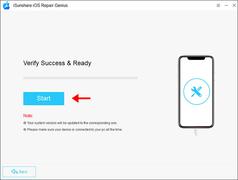 第5步:现在,您可以单击开始按钮在您的 iPhone 上安装 iOS 18 Beta。当您收到成功消息时,您的 iPhone 将重新启动并且所有数据均已开启。