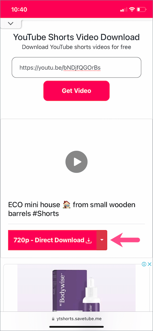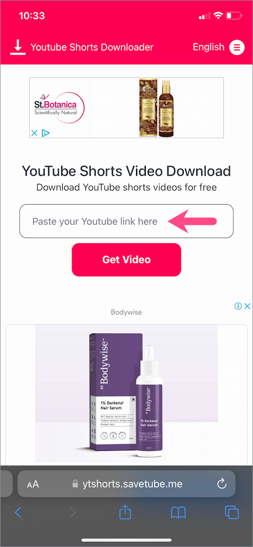 - 访问视频下载网站,例如ytshorts.savetube.me(或使用您喜欢的那个)。