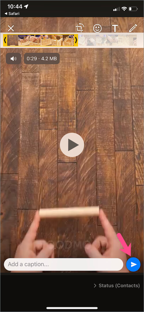 提示:无法将时长超过 30 秒的视频分享到 WhatsApp 状态。要克服此限制,只需先分享视频的最初 30 秒剪辑即可。然后相应地修剪视频并在您的后续状态中分享剩余的片段。
