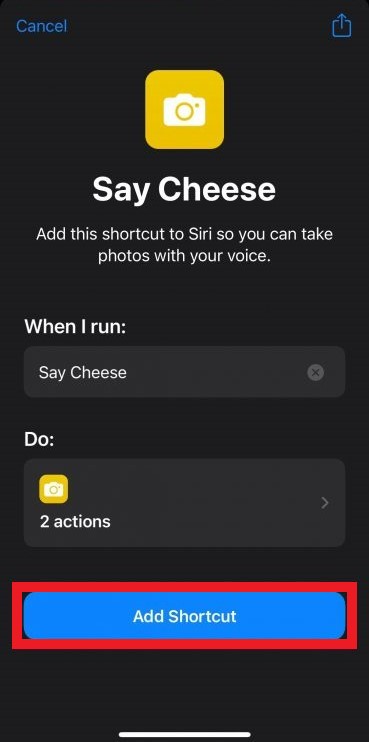 第4步:之后,选择“添加快捷方式”按钮将其集成到 Siri 命令中。