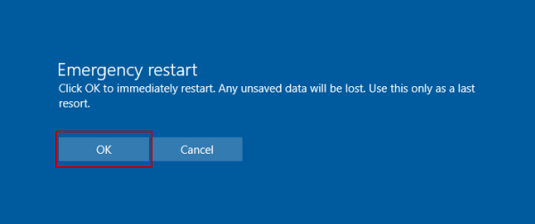 步骤3:会出现一个提示,紧急重启:单击“确定”立即重新启动计算机。任何未保存的数据都将丢失。选择好的立即重新启动计算机。