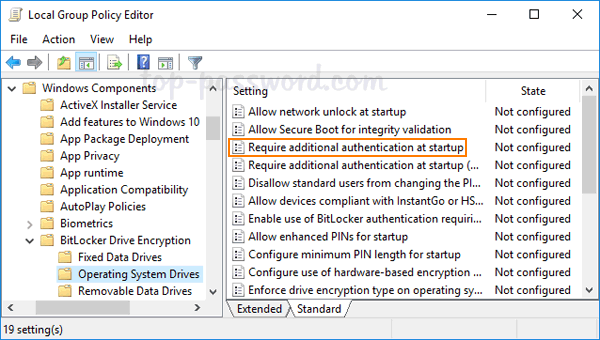 - 转至本地计算机策略 > 计算机配置 > 管理模板 > Windows 组件 > BitLocker 驱动器加密 > 操作系统。双击“启动时需要额外的身份验证”。