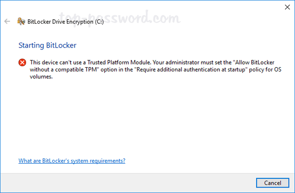 BitLocker 是 Windows 10/8/7/Vista 旗舰版和企业版中的一项有用的硬盘加密功能,它允许您加密整个固定驱动器。如果您尝试在没有 TPM 芯片的旧计算机上启用 BitLocker,您将收到以下错误消息之一: