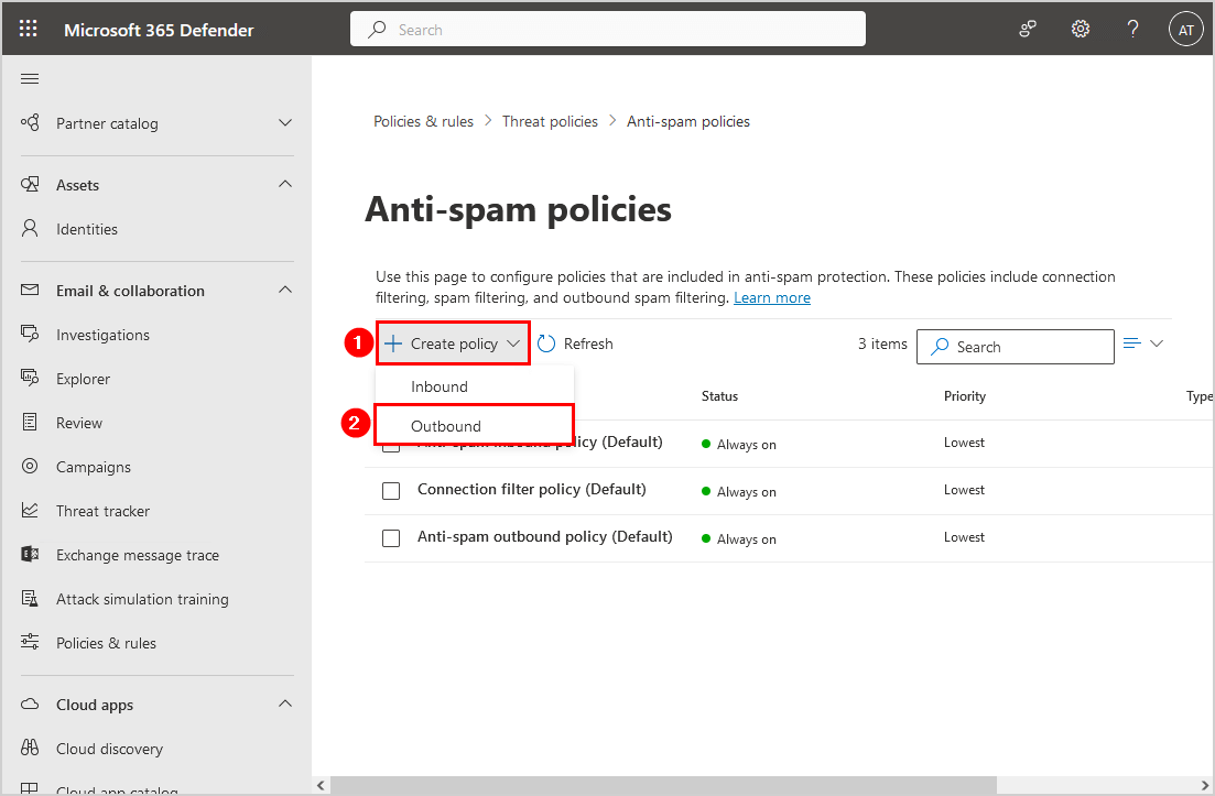- 验证该策略是否出现在反垃圾邮件策略列表中并且状态为在