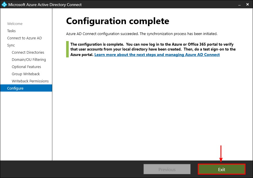 您了解了如何在 Microsoft Entra Connect Sync 中启用组写回。首先,通过 Azure AD Connect 向导启用组写回。接下来,验证 Microsoft 365 组是否已成功写回。