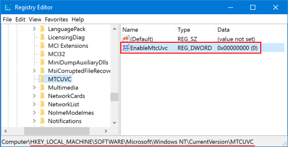 HKEY_LOCAL_MACHINE\SOFTWARE\Microsoft\Windows NT\CurrentVersion\MTCUVC参见:如何修复 Windows 11 中的 ReFS 卷修复错误