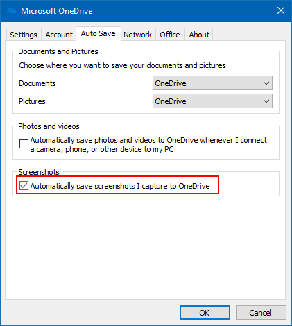 第 2 步:选择自动保存选项卡,查看自动将我捕获的屏幕截图保存到 OneDrive 框中。