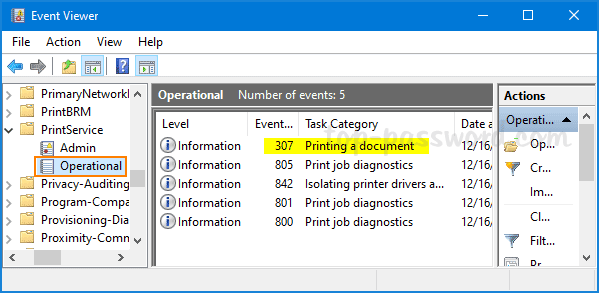 - 从此时起,事件查看器将记录您的所有打印活动,您可以在下面查看事件日志