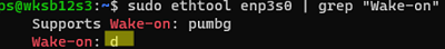 $ sudo ethtool enp3s0 | grep "Wake-on"