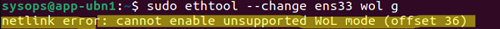 这 'netlink error: cannot enable unsupported WoL mode (offset 36)' 表示网络适配器不支持 WoL 或在 BIOS 中禁用了 WoL。