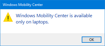 reg add HKEY_CURRENT_USER\Software\Microsoft\MobilePC\MobilityCenter /v RunOnDesktop /t REG_DWORD /d 1 /f