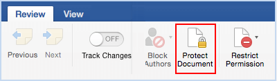 步骤 1:在 Mac 上,打开 Word 文档,单击审查>保护文档。